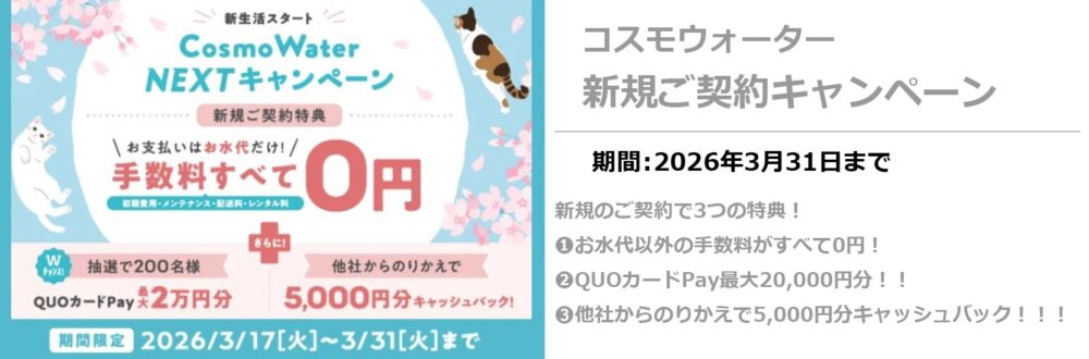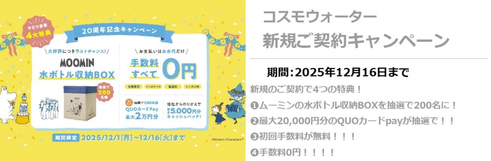 私自身が以前からのコスモウォーターファンであることを差し引いても、全力でおすすめできるウォーターサーバーだと思っています。