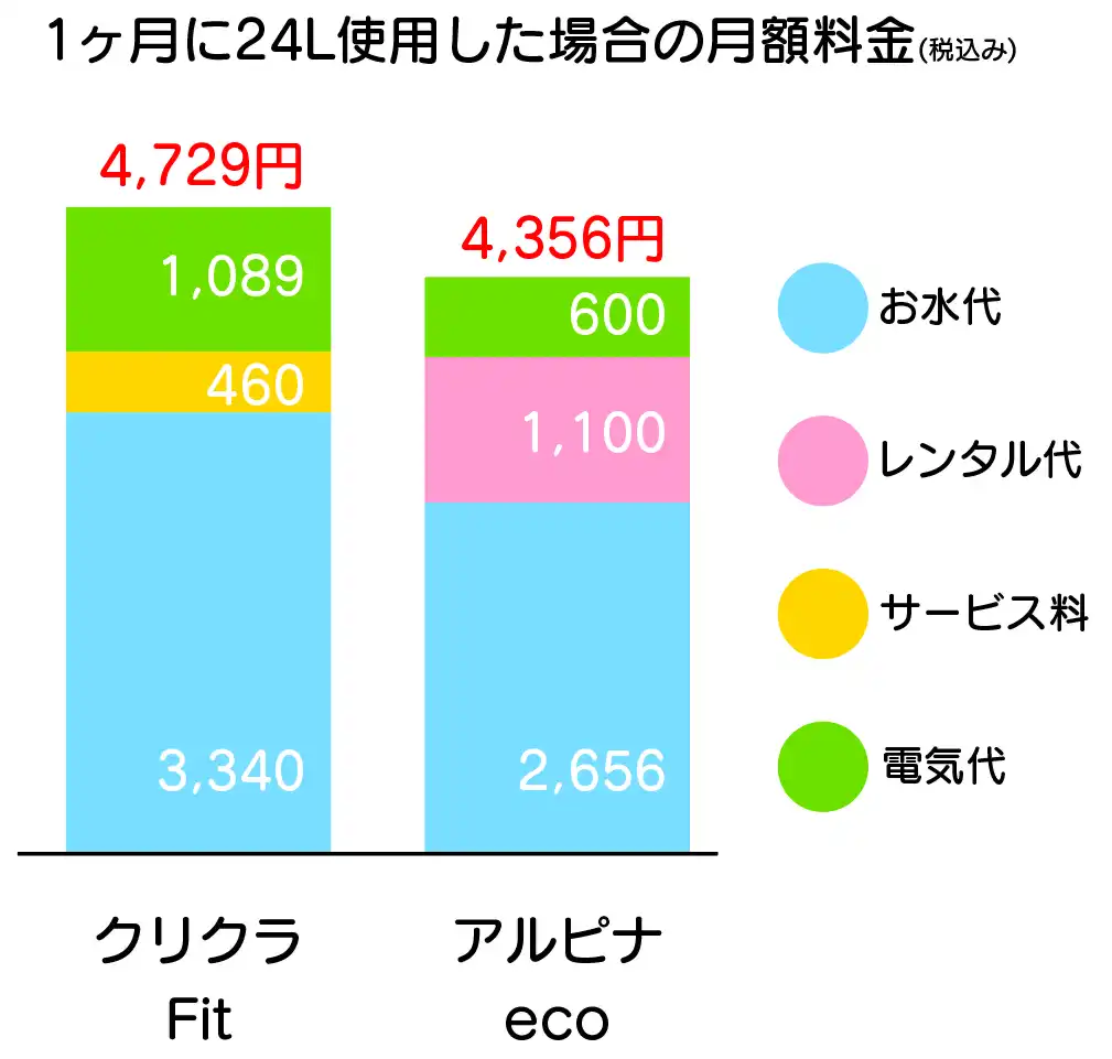 ※クリクラはお得スタートプランの場合、アルピナウォーターは関東エリアの場合