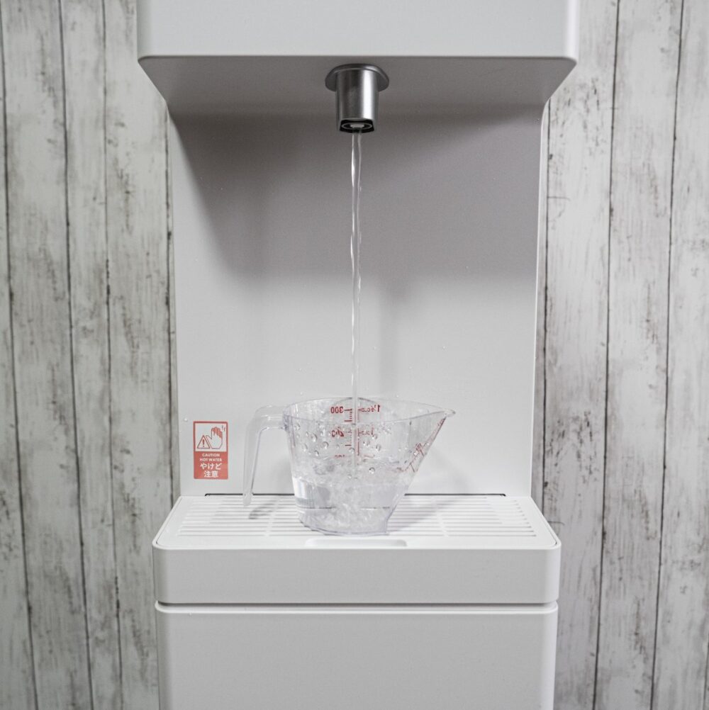 白湯専用ボタンが備わったサーバーは初めて見たよ。もちろん、白湯も浄水されたお水なんだ。