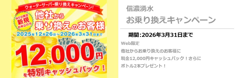 信濃湧水 お乗り換えキャンペーンはこちら
